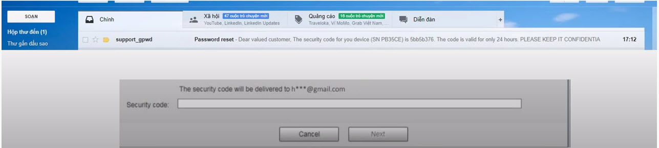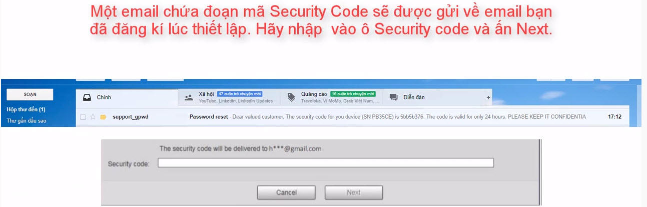 Kiểm tra email --> nhập đoạn mã Security Code vừa nhận được vào ô Security Code