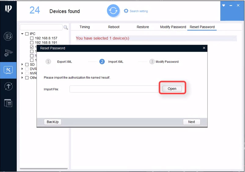 CÁCH KHÔI PHỤC MẬT KHẨU CHO CAMERA, ĐẦU GHI KBVISION TRÊN PHẦN MỀM CONFIG TOOL VỚI FILE XML