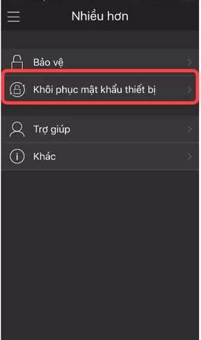 Chọn Nhiều hơn --> Khôi phục mật khẩu thiết bị