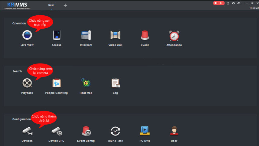 Sau khi cài đặt xong phần mềm thì ta tiến hành cấu hình cho hệ thống đầu ghi hoặc camera KBvision của mình để xem trên máy tính, laptop