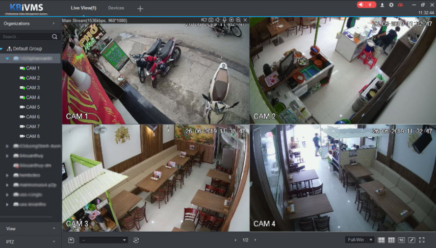 - Bấm vào dấu + trên cùng thanh tab bar > chọn biểu tượng Live phần mềm KBiVMS sẽ chuyển đến màn hình như bên dưới:
