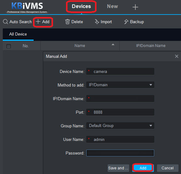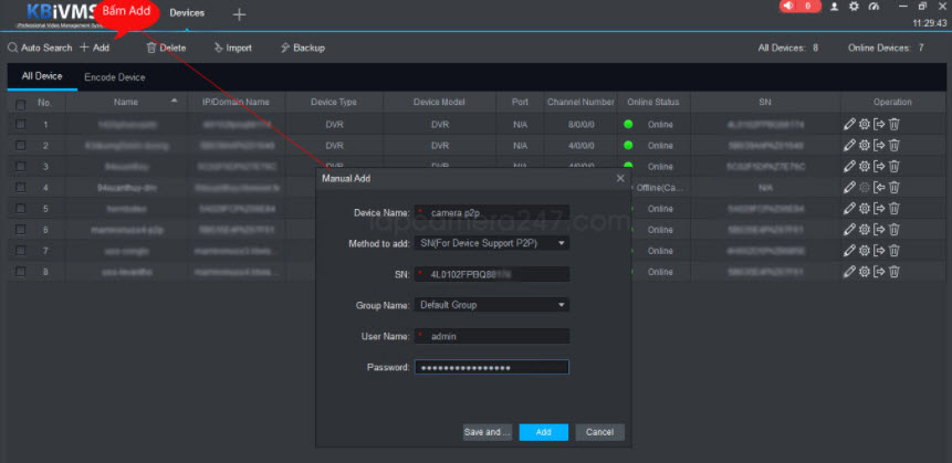 - sau đó chọn Add để hoàn tất cài đặt xem camera KBVISION trên máy tính của khách hàng.