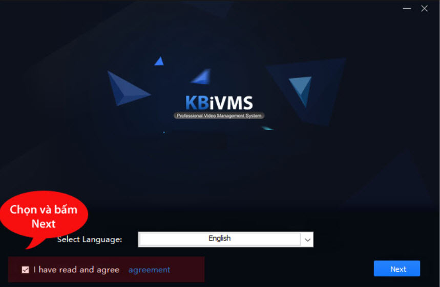 - Bấm Next để tiếp tục cài đặt KBiVMS