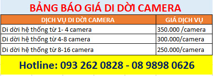 Bảng giá trên là phí lắp camera từ vị trí cũ và lắp mới lại cho khách hàng.