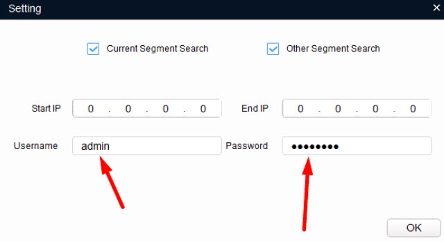 Điền đúng username và mật khẩu của đầu ghi hình vào đây rồi nhấn OK.
