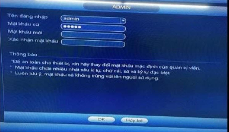 Để đảm bảo an toàn nhất cho toàn hệ thống, chương trình sẽ cho phép đổi mật khẩu bằng bảng thông báo đổi mật khẩu mặc định.