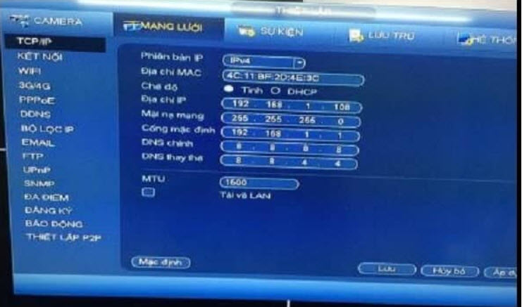 - IP Tĩnh: Quý khách tự cài đặt địa chỉ ip cho đầu ghi hình, địa chỉ này không thay DHCP: Chức năng tự động tìm kiếm địa chỉ IP, Khi kích hoạt chức năng