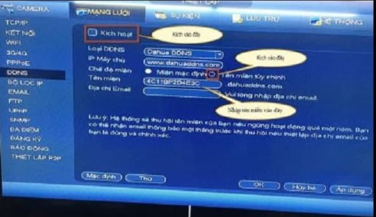 - Các bạn check vào ô kích hoạt để sử dụng chức năng DDNS