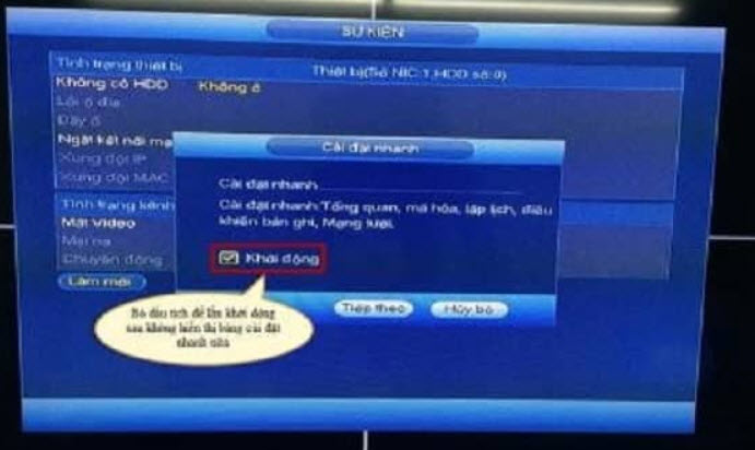- Khi Đầu ghi hình khởi động, hệ thống chương trình cài đặt nhanh sẽ được bật lên.