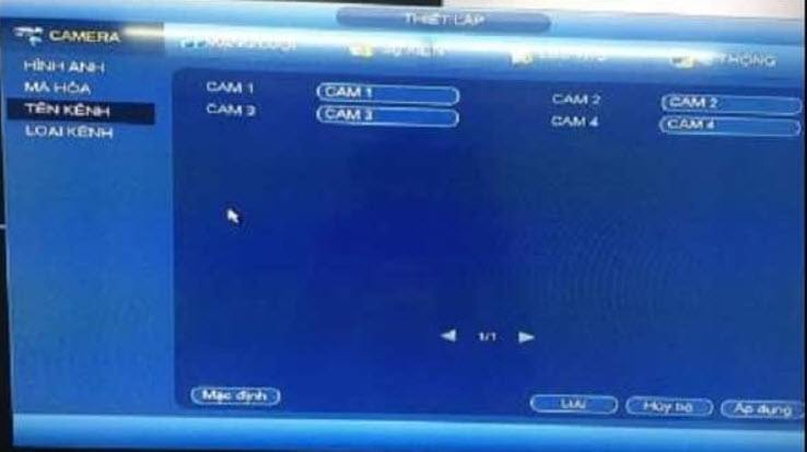 - Để điều chỉnh tiêu đề kênh bằng cách vào Menu chính => Thiết lập => Camera => Tên kênh.