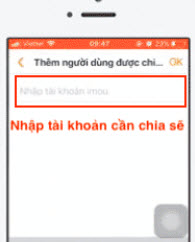 Sau đó nhập tài khoản cần chia sẽ để xem camera Imou là Ok, tài khoản ở đây là email đăng ký trên Imou