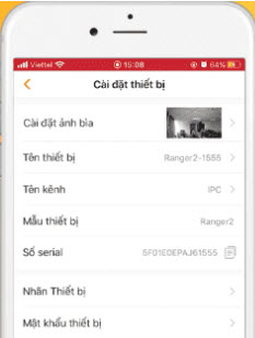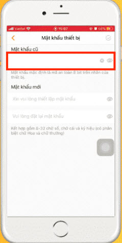 Sau khi chọn camera cần đổi sẽ có giao diện như hình dưới đây và bạn chọn mục Mật Khẩu Thiết Bị