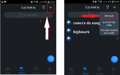 Chọn biểu tượng dấu cộng (+) góc phải -> chọn SN hoặc quét