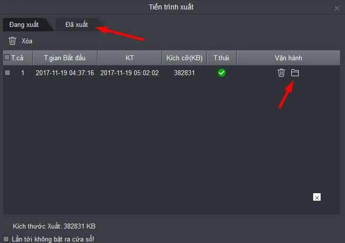 Sau khi xuất xong chúng ta vào Tab Đã xuất vào nhấn vào biểu tượng cặp để mở thục mục lưu của file đã tải về.