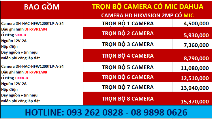 Lắp đặt trọn gói camera Full HD Dahua 2MP có Mic chính hãng