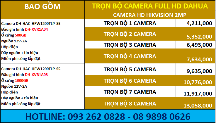 Lắp đặt trọn gói camera Full HD Dahua 2MP chính hãng
